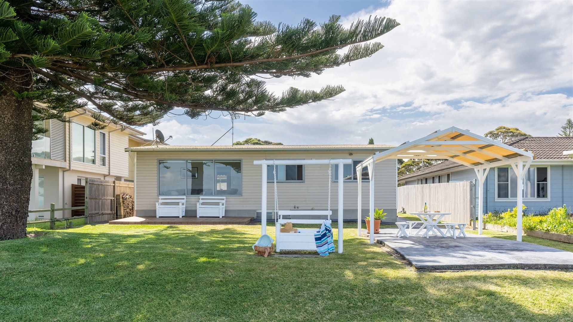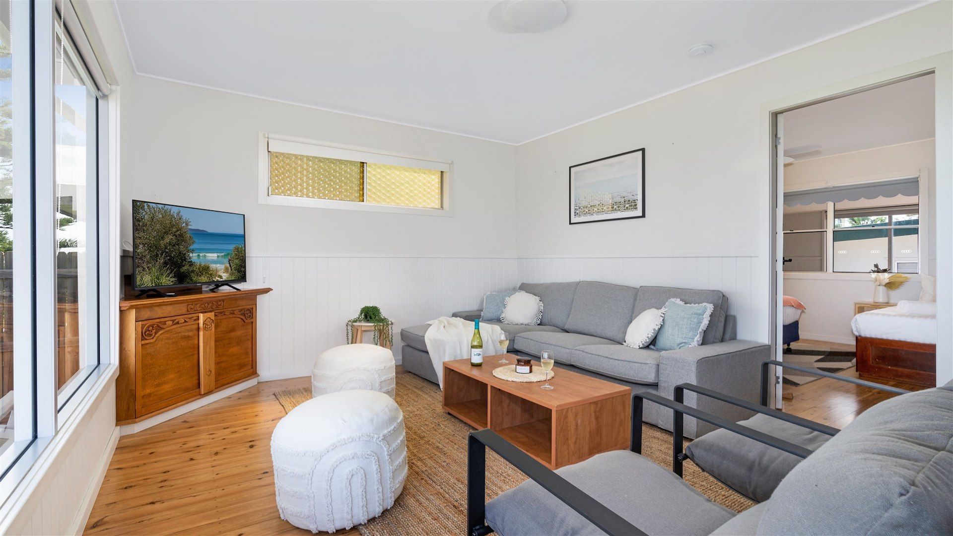 Step out the door and onto the sand! This charming, picture-perfect home is right on the beach and boasts unbeatable views of the ocean. This sea-side sanctuary is built with relaxation in mind, making the most of its ideal location to provide the perfect place to unwind and enjoy the view. Absolute Beach is comfortably furnished and complete with stylish coastal themed décor - the perfect backdrop to a dreamy family or group getaway. The shaded alfresco dining area is perfect for dinners and lunches by the shore, no need to bring a picnic rug! There's even an outdoor shower so guests can wash the sand off before returning home from a long day at the beach.