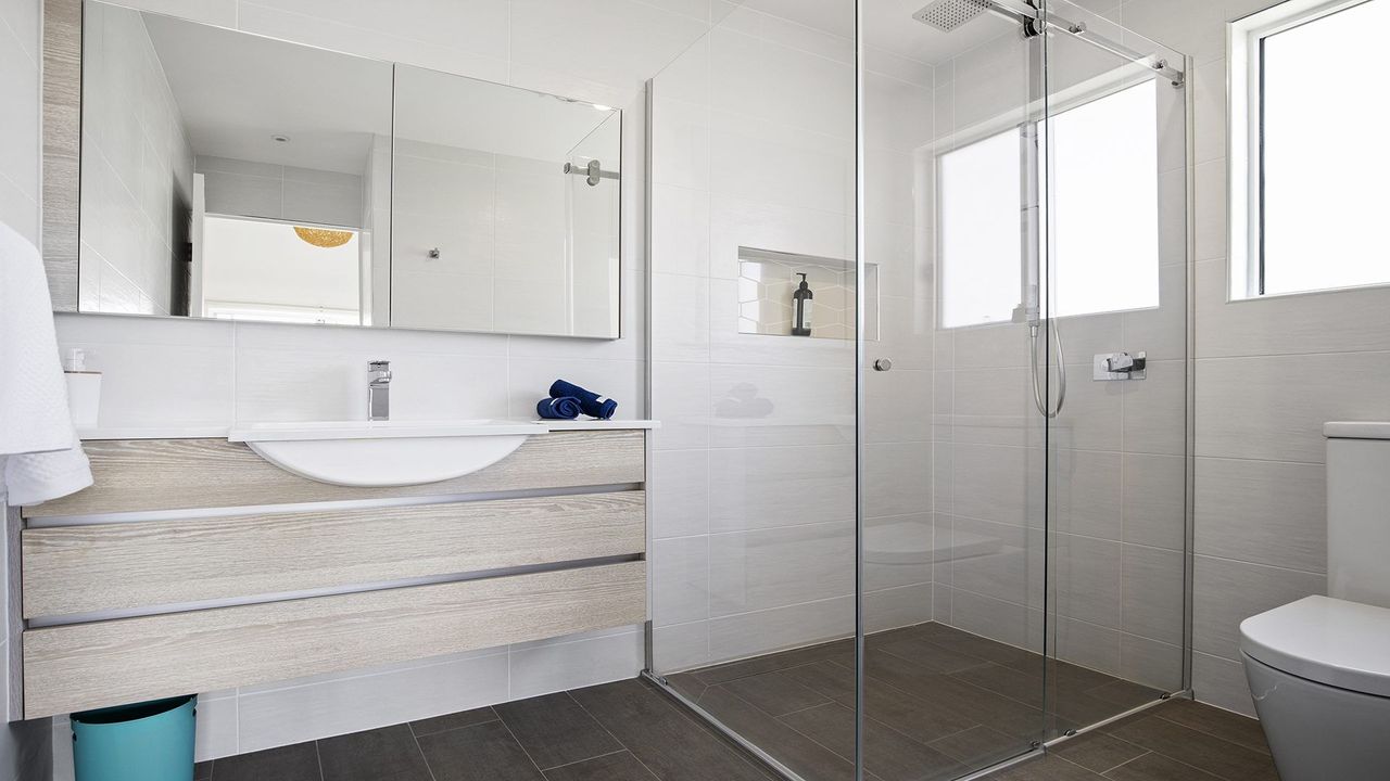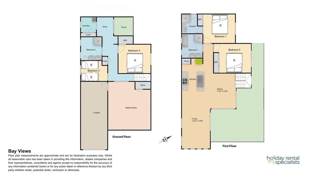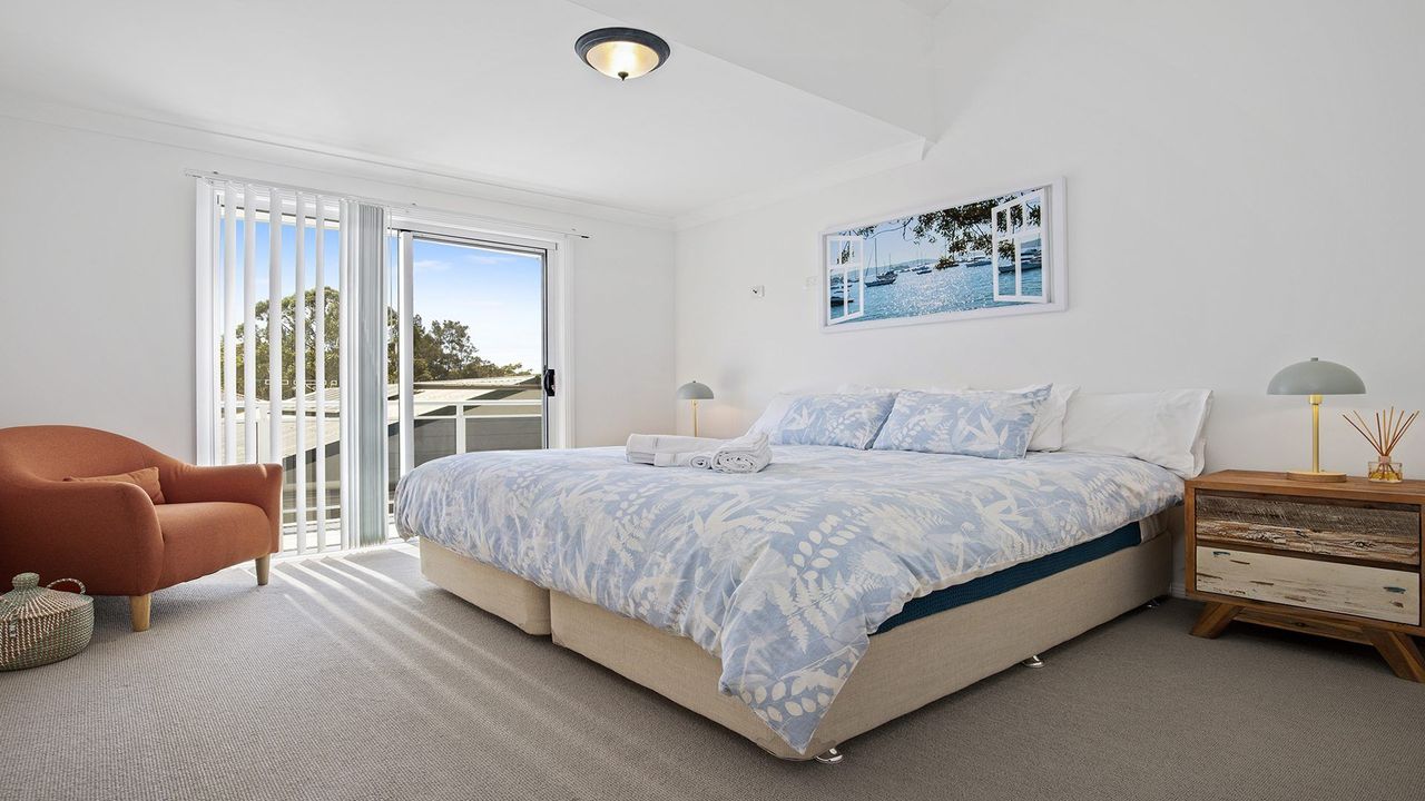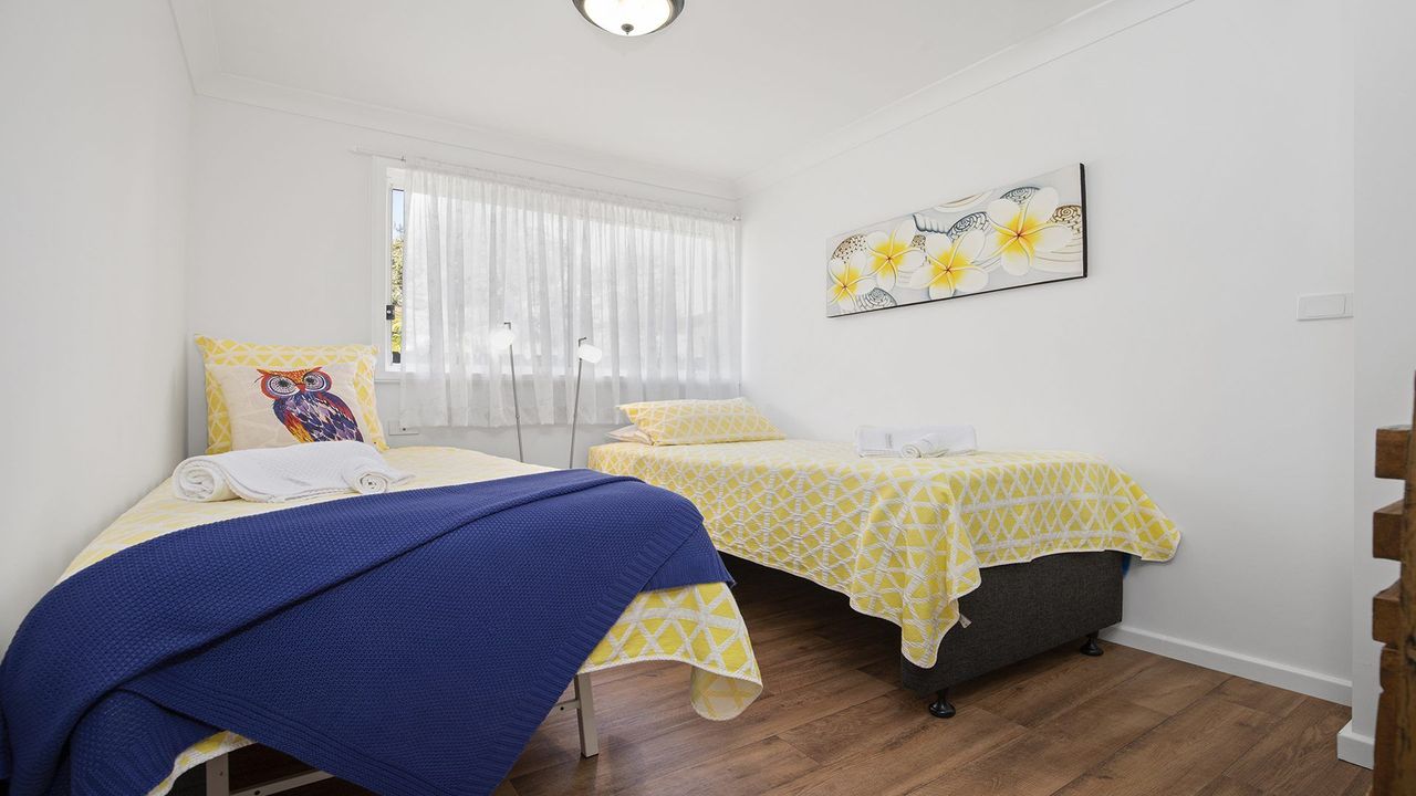 The home comprises of two bedrooms upstairs, both featuring curved ceilings and built-in robes, with the main bedroom having an ensuite bathroom. Downstairs, there are a further two bedrooms, along with an additional bathroom and laundry. Bedroom 2 has a super king bed that can be set up as two king singles if required, please advise our bookings team if this is required