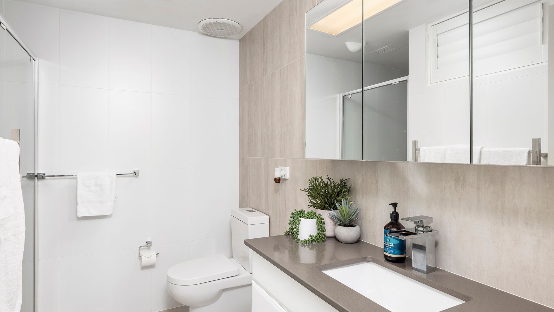 • Bathroom: shower with grab rail, toilet, vanity and hairdryer