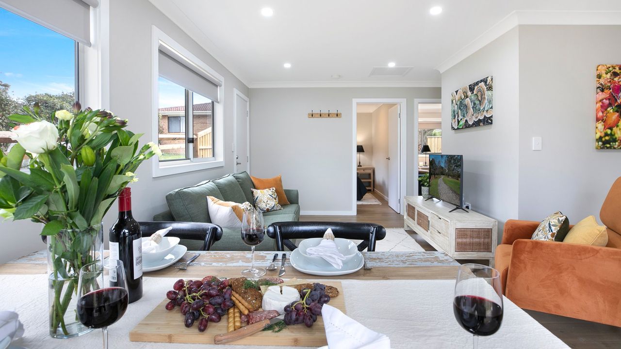 This tastefully designed property features two well-appointed bedrooms, a comfortable living space and a dining area. It’s fitted with reverse cycle air conditioning and a smart TV for year-round comfort and enjoyment.