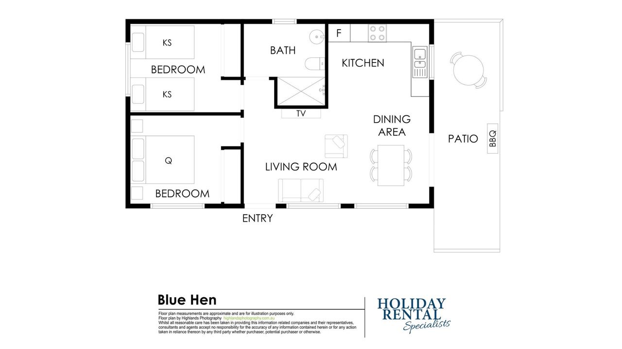 Holiday Rental Specialists are pleased to present Blue Hen, ideal for couples and small families.