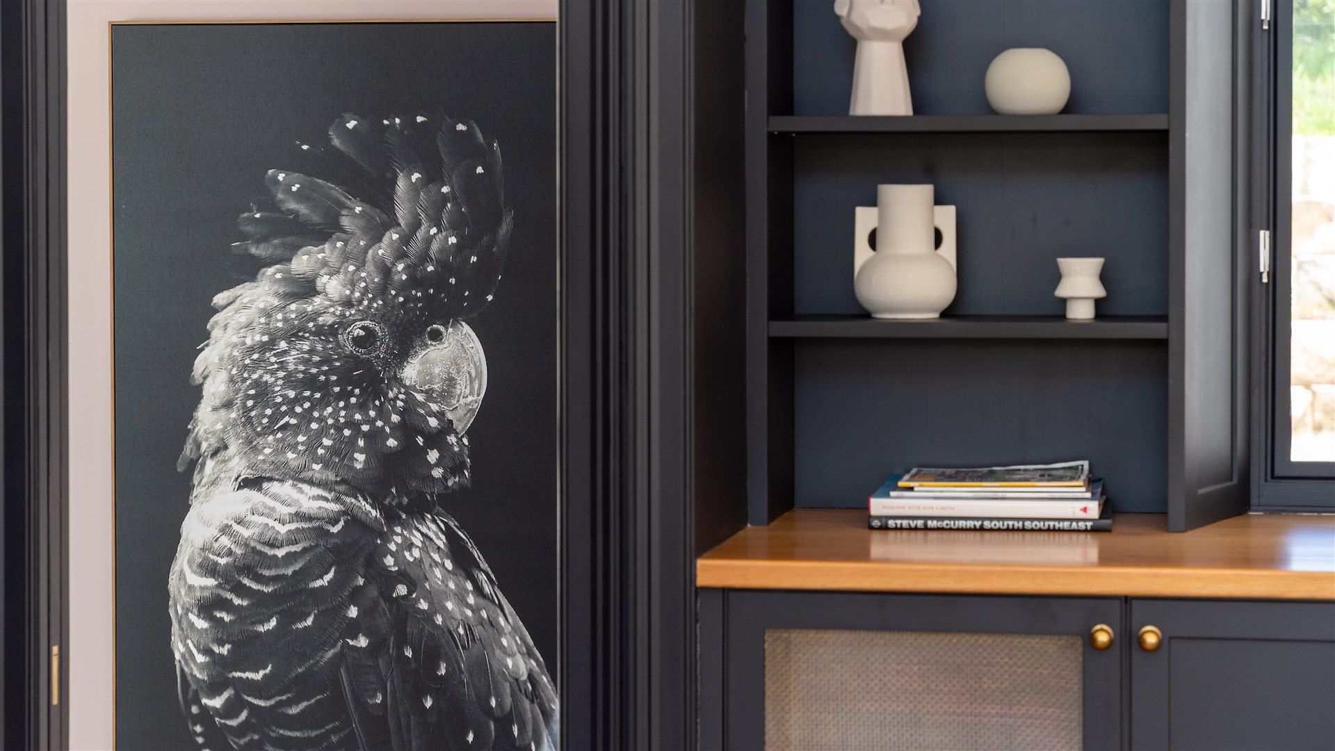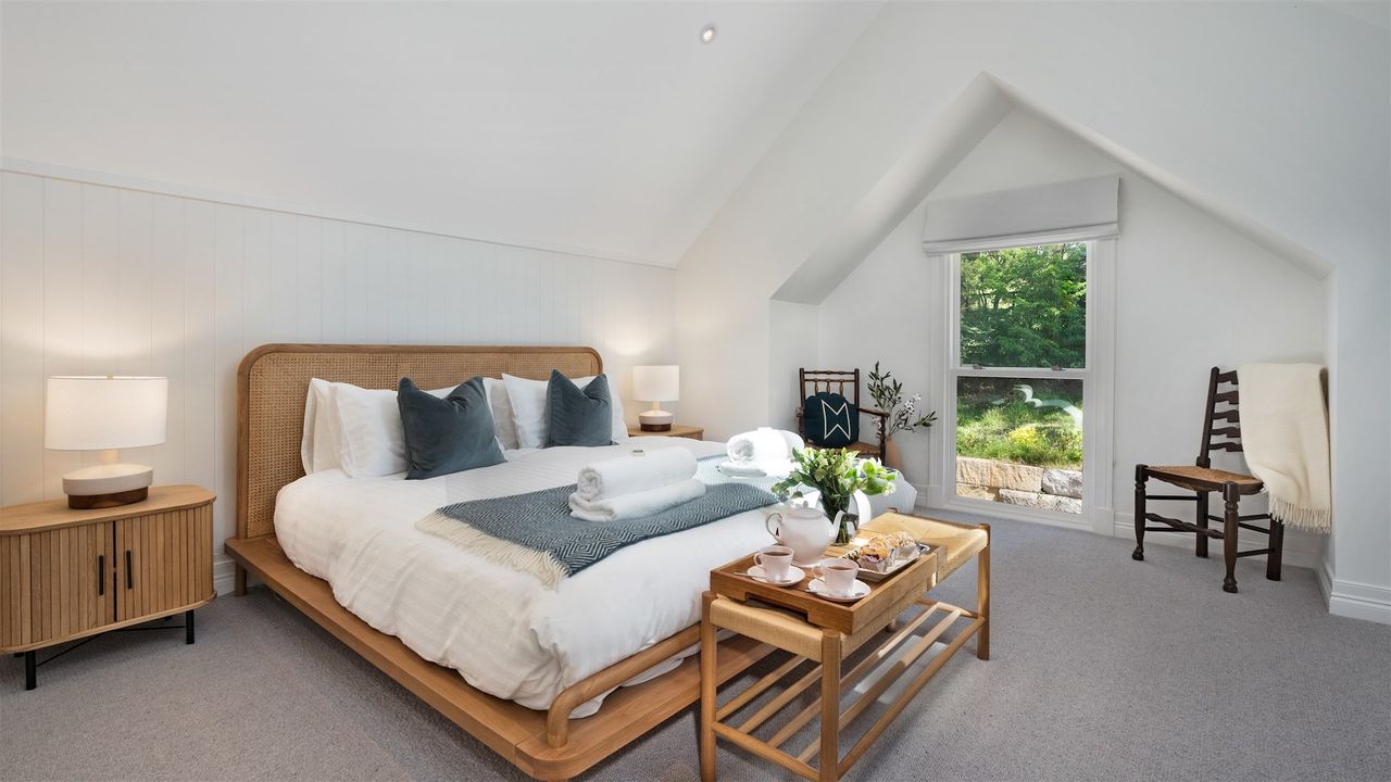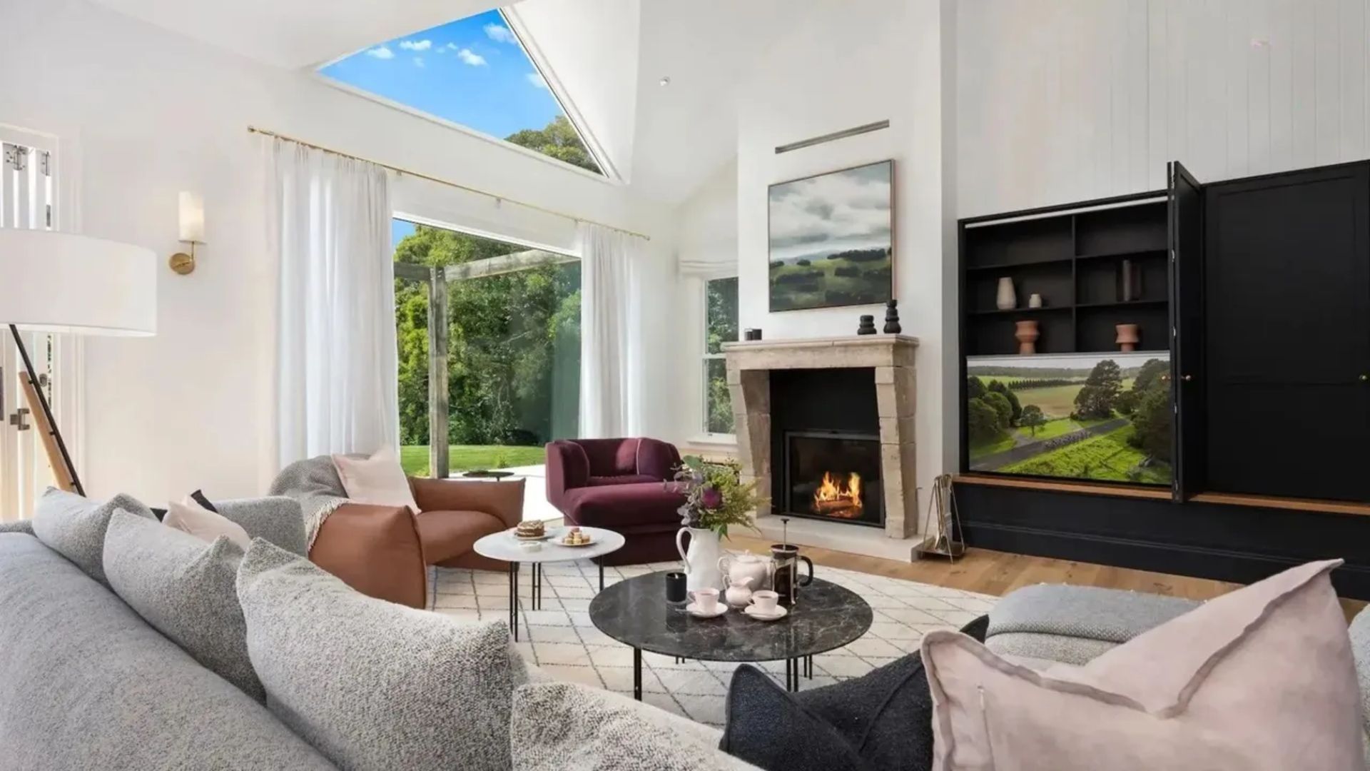 Burrawang House is a luxury five-bedroom country retreat nestled in the prized Southern Highlands village of Burrawang, a 15-minute drive from Bowral. Set on one-acre and bathed in sunlight, this house is surrounded by towering 100-year-old trees and features a pool, outdoor spa, alfresco dining area with fire-pit, and plenty of other spaces to eat, drink and relax. This is country life at its best. The huge kitchen is the heart of the home and features a three-metre island bench, Bertazzoni oven, and north facing cantilevered window which opens to the outside living room.