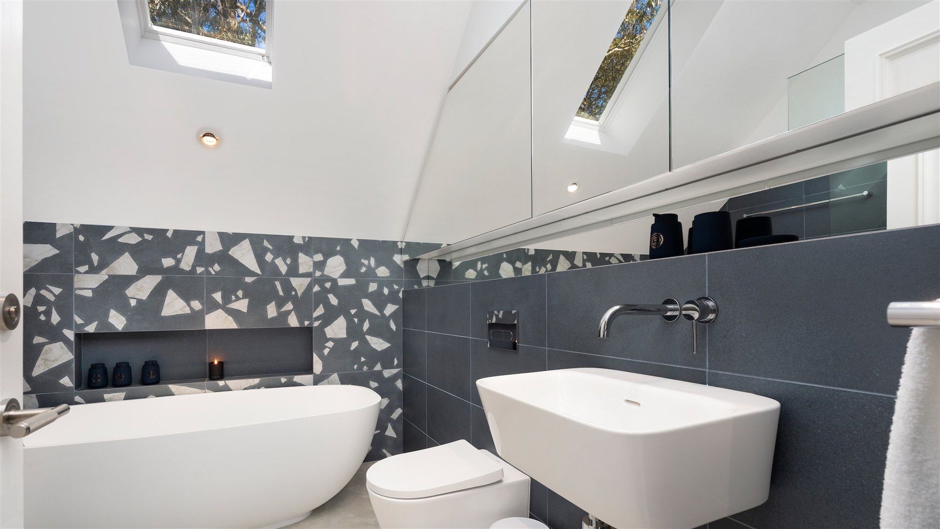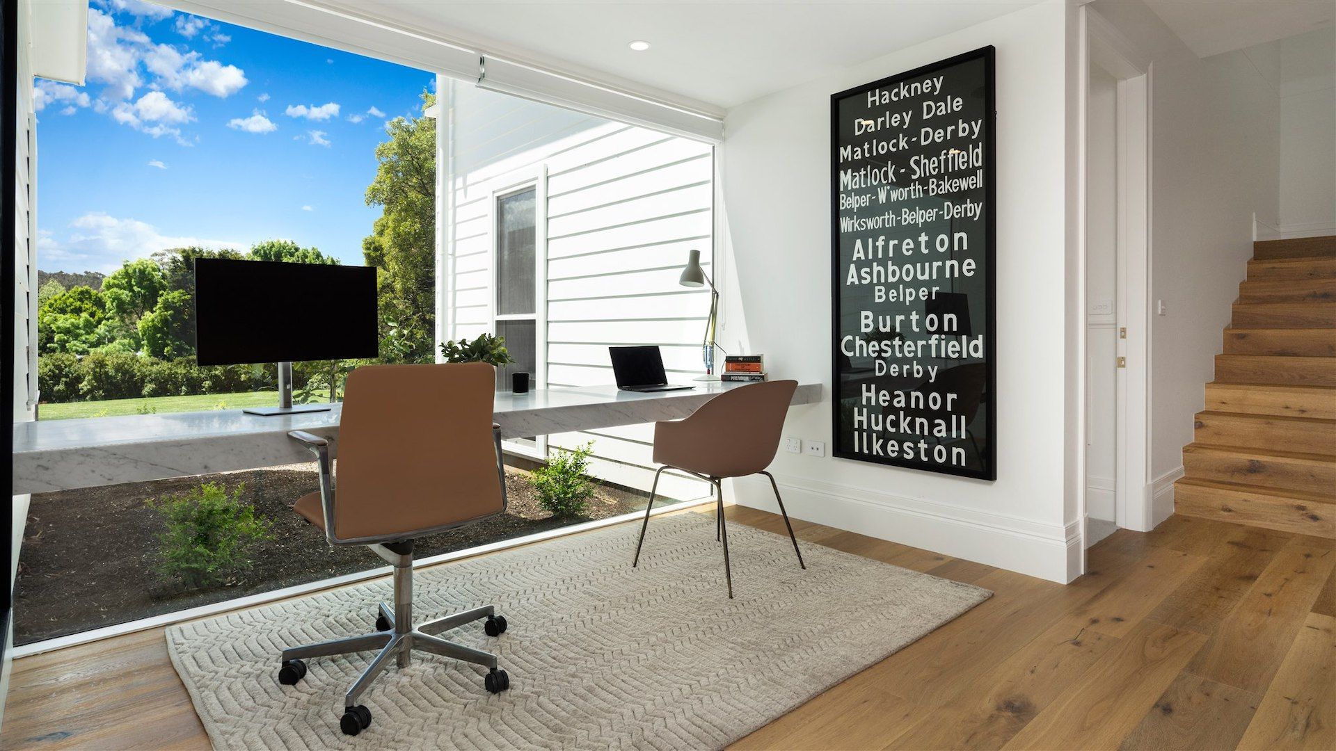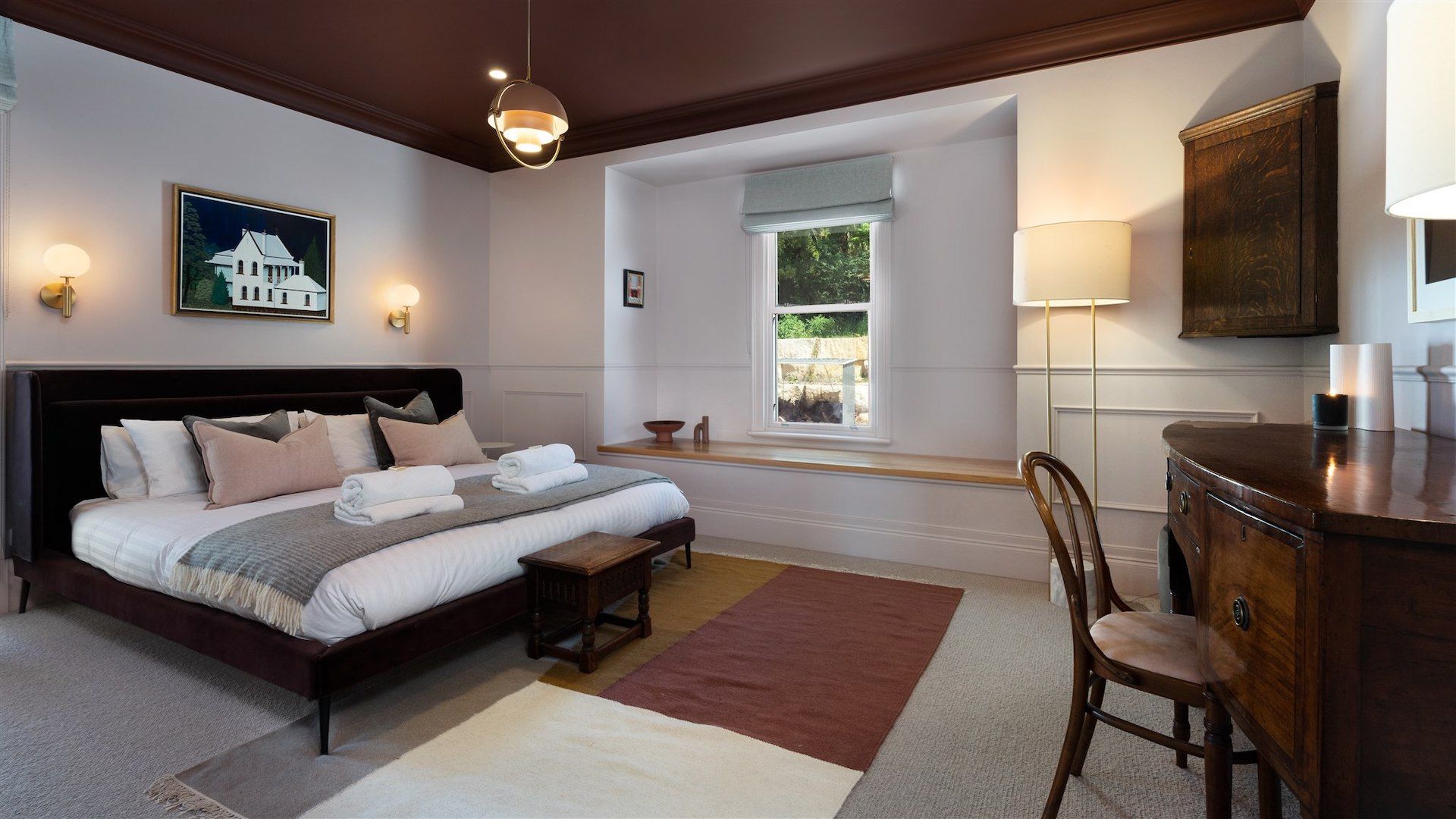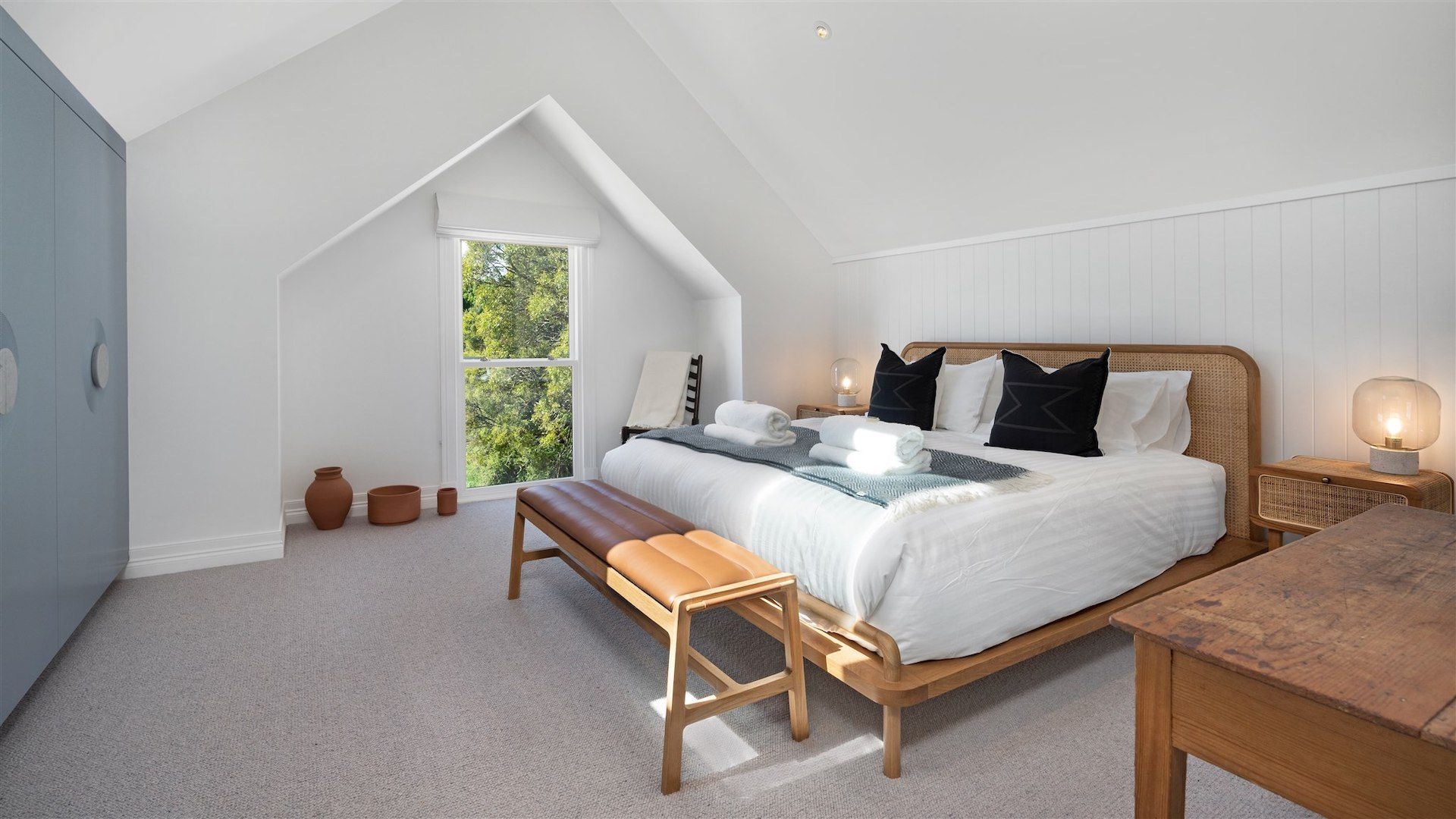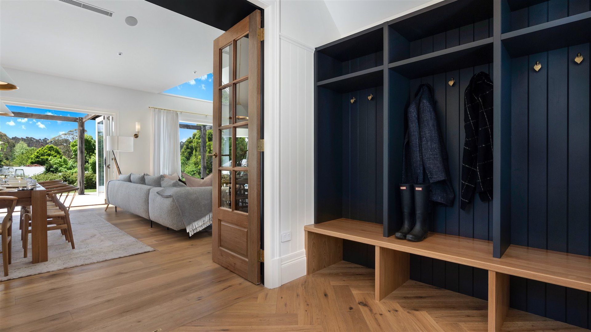 • Raked ceilings and large feature windows framing the view to the gardens and beyond