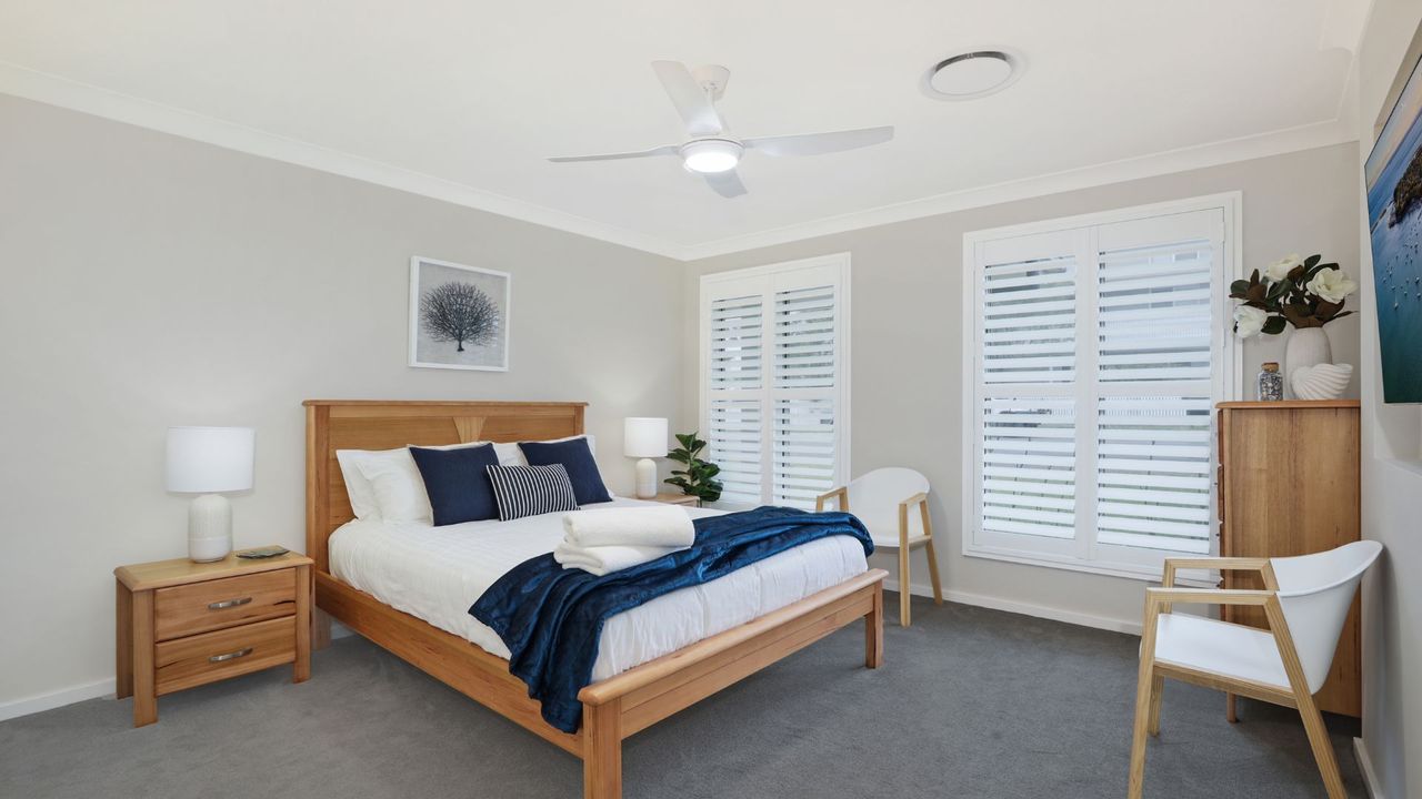 The location makes holidaying here even more appealing. With just a short 100 metre walk to the sand and nearby Progress Park and playground, you’ll never be short of family fun. Launch a boat or drop a line at the jetty, or stock up and enjoy local bites at the Callala Bay shops, all within walking distance. Bicentennial Park is only a kilometre away and offers everything from bushwalks and picnics to fishing and swimming in a peaceful natural setting. Nearby at Callala Point is a favourite spot for windsurfing and kitesurfing, with protected flat-water conditions close to shore making it perfect for both learners and the more adventurous. For a taste of local flavour, enjoy authentic Italian woodfired pizza and gelato at Callala Beach, tee off at Club Callala, or take the Husky Ferry across the sparkling waters of Currambene Creek for a 10-minute cruise into the heart of Huskisson – a lively hub of cafés, shops, and dolphin-watching tours.