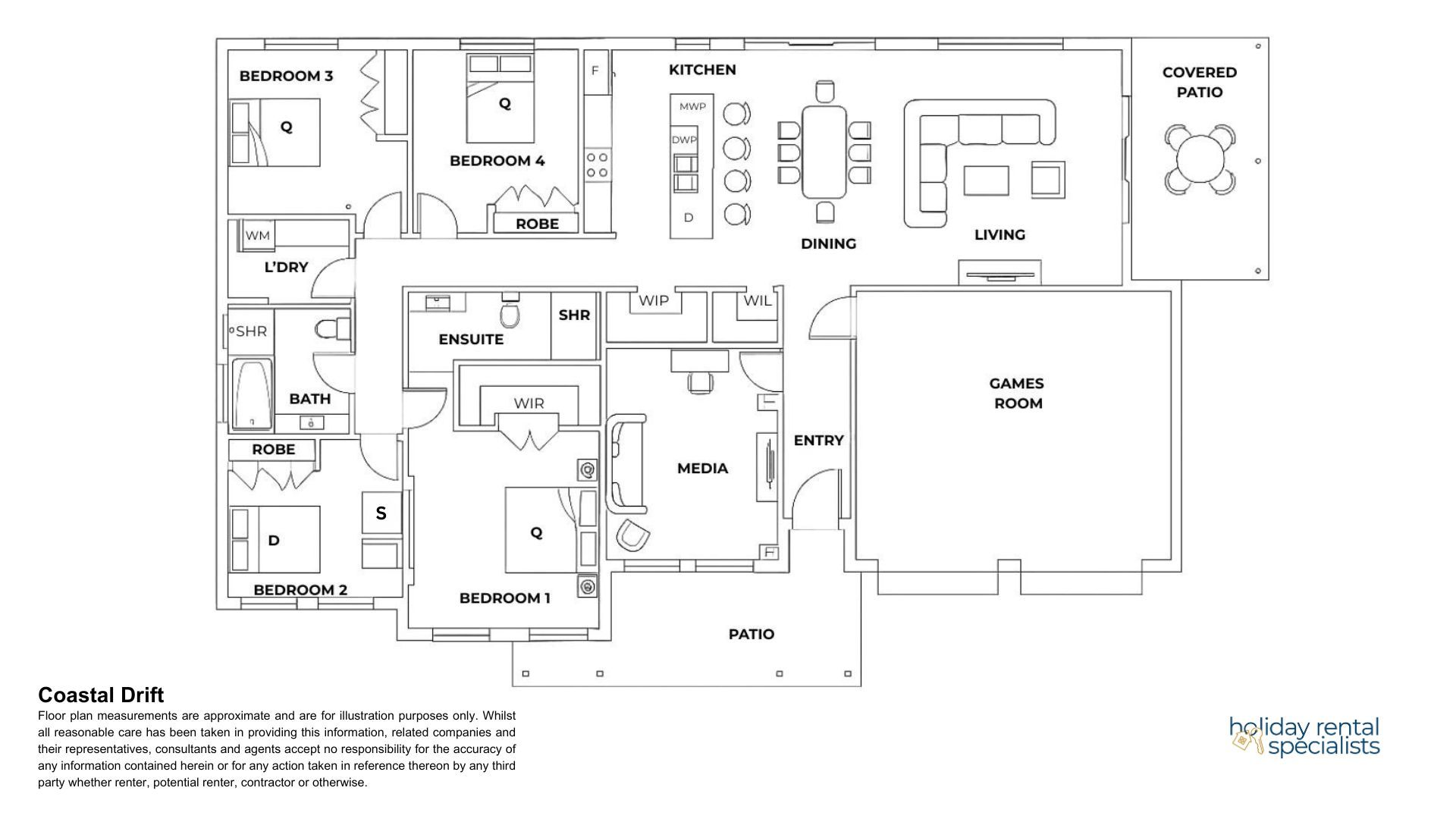 Holiday Rental Specialists are pleased to present Coastal Drift, ideal for couples, families and groups.