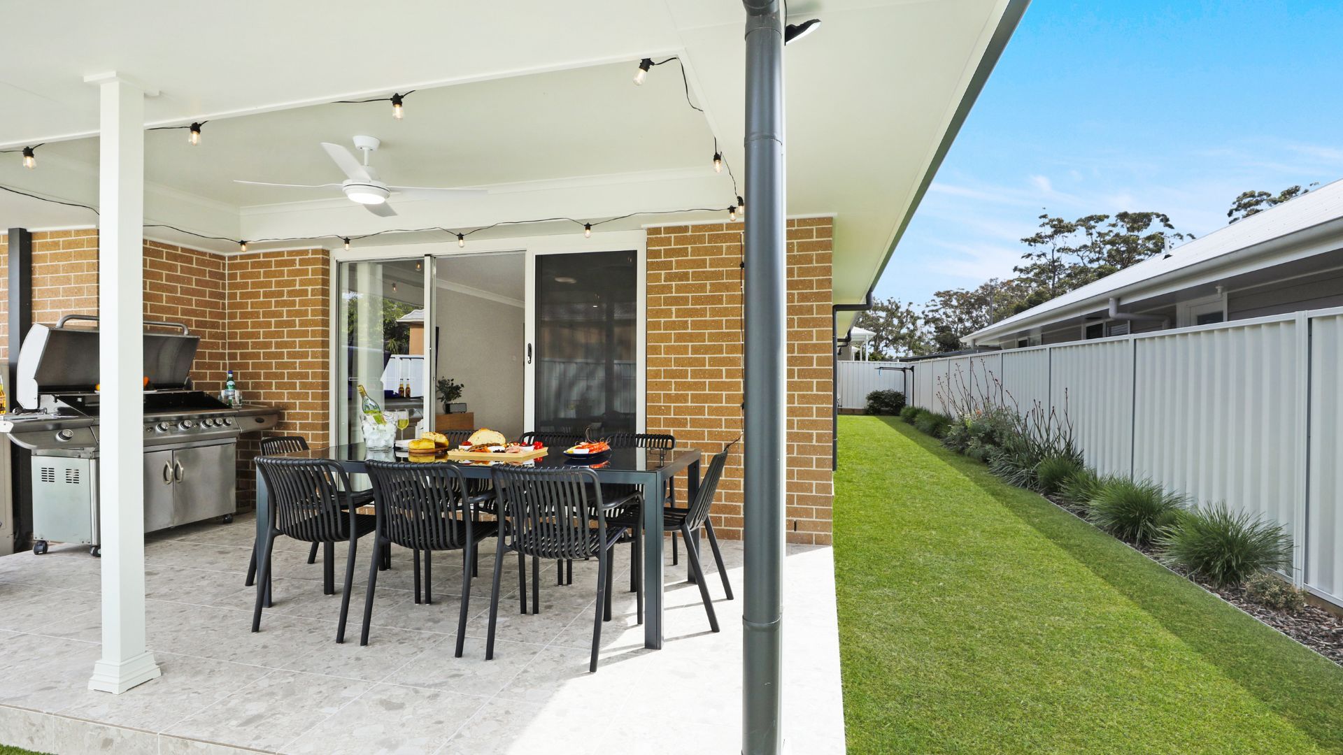 • Covered outdoor entertainment area, al fresco dining, 5-burner BBQ