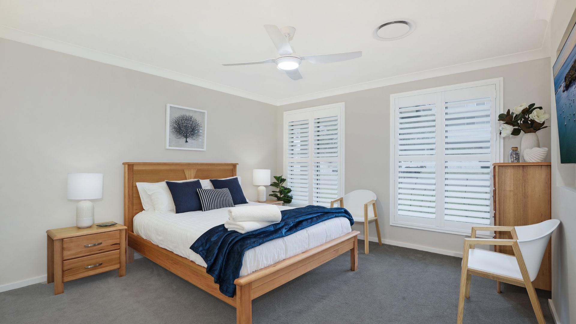 Step inside Coastal Drift and discover a fresh and inviting four-bedroom holiday home designed for easy coastal living. With ducted air conditioning and ceiling fans in every bedroom, fly screens on all windows and doors, comfort is a given. The chef’s kitchen is fully equipped with everything from a microwave and air fryer to a Nespresso coffee machine, making mealtimes a breeze. Families and groups will love the choice of spaces, spreading out across the open plan living and dining area, or the media room with a laptop-friendly workspace, children's books and board games - or head to the games room for table tennis and a variety of games. With WiFi, video intercom, a washing machine and dryer, plus complimentary portable cot and high chair, every detail has been thought of to keep your holiday hassle-free.