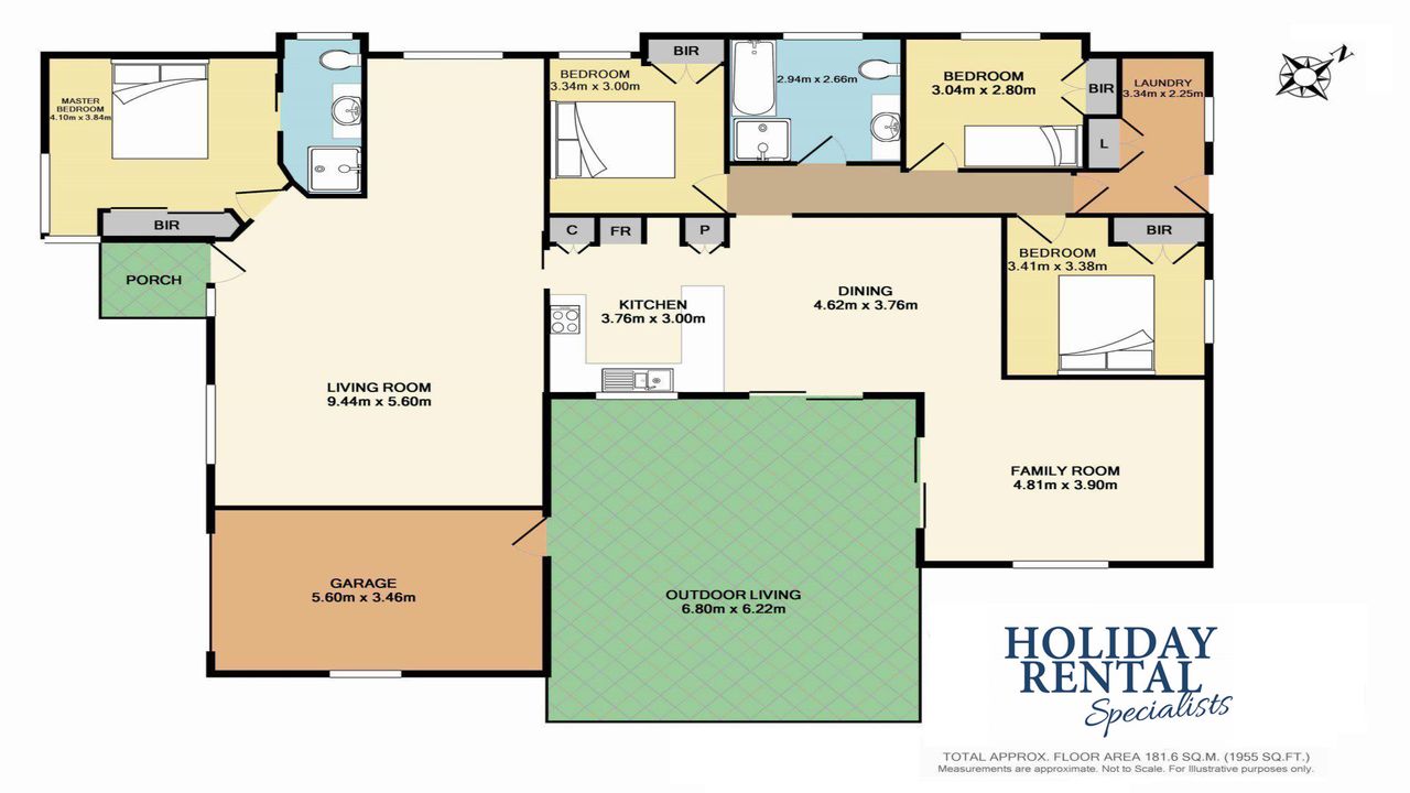 We have four bedrooms, two bathrooms, including ensuite and two living areas, ideal to allow the kids and adults to have separate areas to chill out in. You will love the outdoor covered entertainment area where you can enjoy family BBQs and relax after a day at the beach.