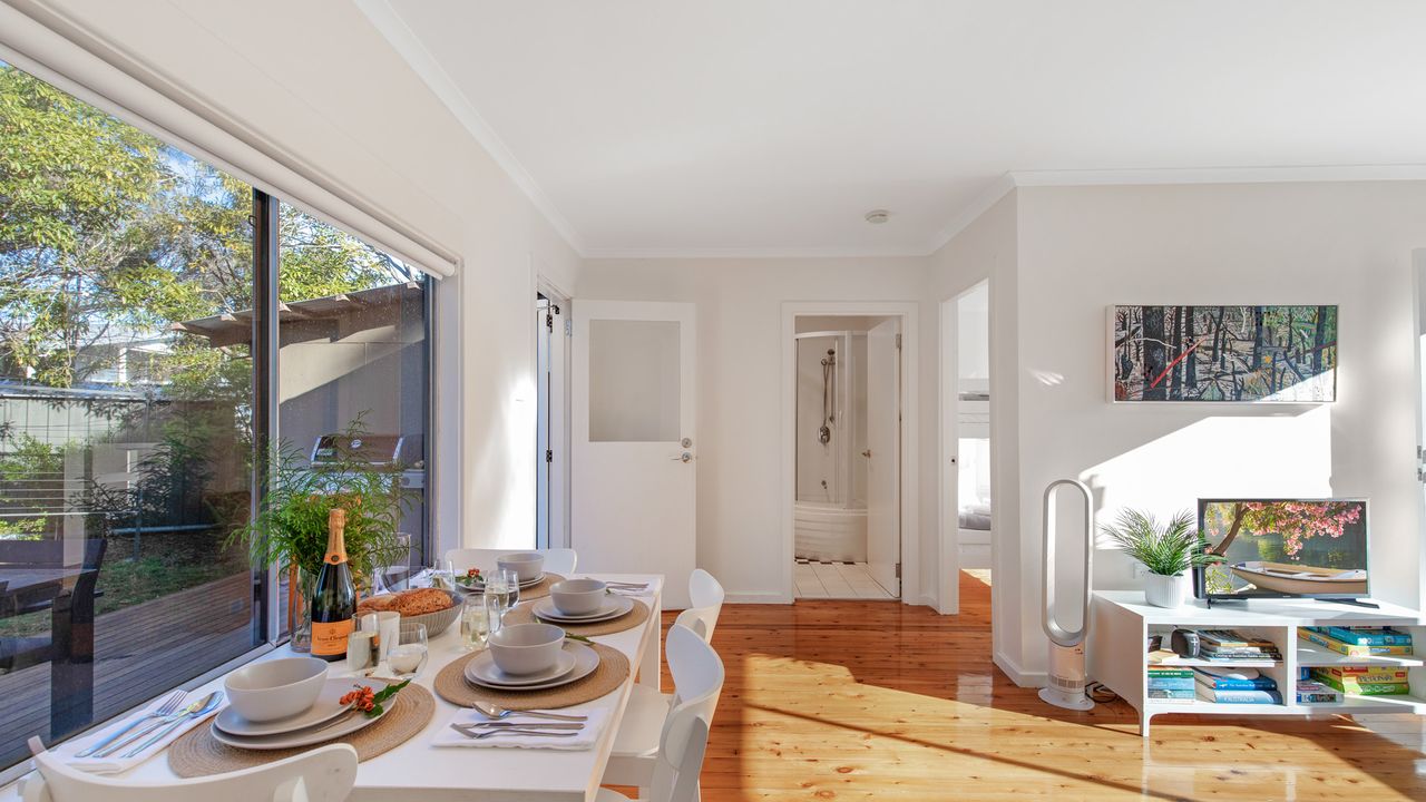 Immerse yourself in the refreshing coastal breeze in the secluded backyard, nestled amidst picturesque bushland, while relishing a morning beverage and the sweet sound of chirping birds. Indulge in a delicious BBQ and a glass of wine as you observe the local kangaroos.