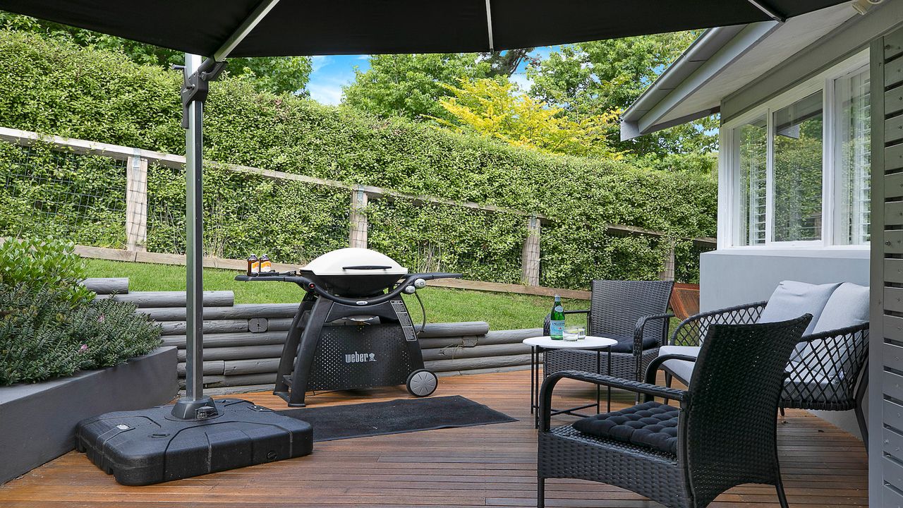 • Separate outdoor space with dining table and Weber BBQ