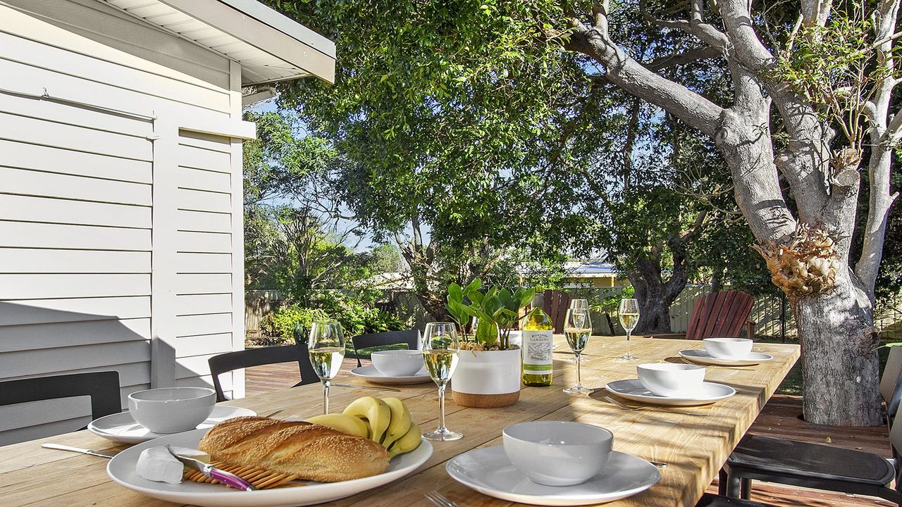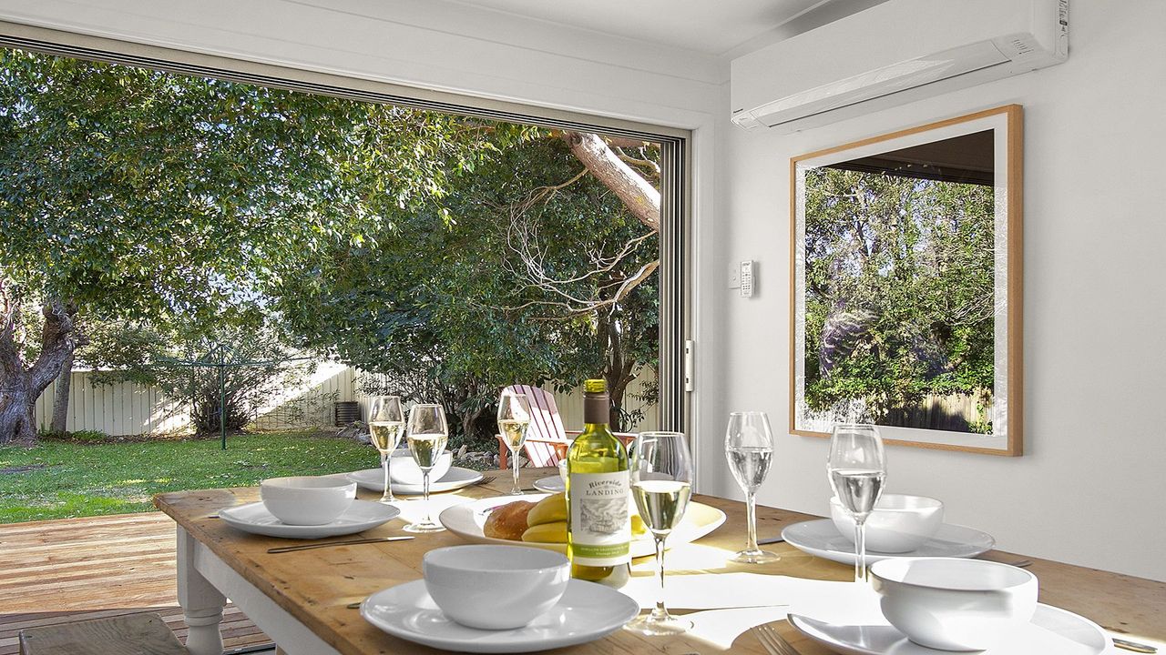 Prince Edward Escape has been renovated throughout since it was purchased in late 2018. It has a fresh, light and airy feel with glass sliding doors leading from the living area to the outdoor deck providing a great indoor/outdoor living space overlooking the fully fenced grassed backyard. It is a perfect place to relax while listening to the sound of the ocean. It's decked out with a large table with 8 chairs, a large cavalier umbrella and a SMEG stainless steel BBQ.