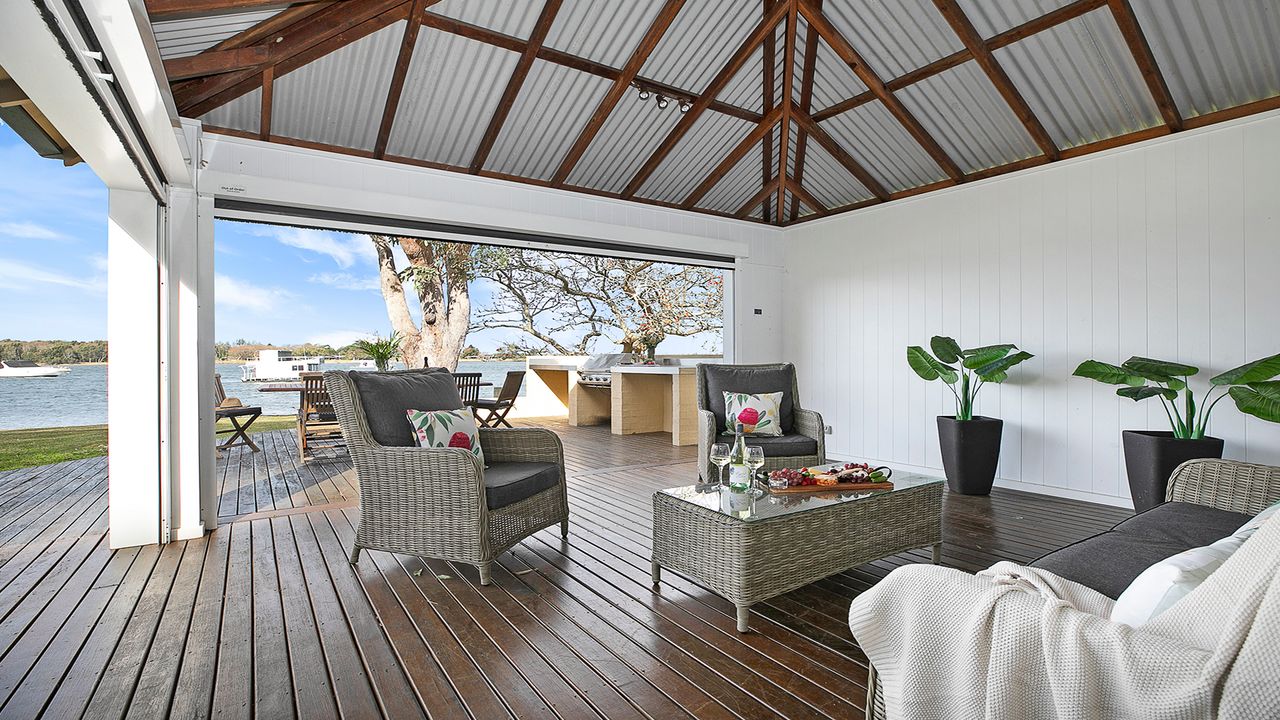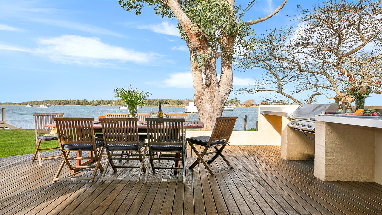 As you step outside, there is a wraparound deck, choose your space in a quiet corner looking out over the water or relaxing in the outdoor spa which sits secluded behind the spacious entertainment and BBQ area. A tranquil oasis where you can bask in the sun, read a book, or simply soak up the natural beauty that surrounds you. And when you're ready for some aquatic adventures, you can head out for fishing, and boating opportunities abound.