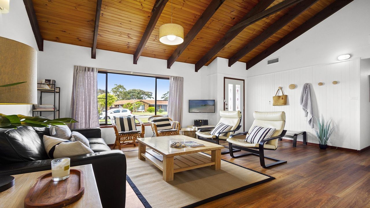 Step inside this charming three-bedroom home, where comfort meets simplicity. The spacious layout features ducted air conditioning to keep you cool in summer and warm in winter. A cosy dining area invites you to share meals together, while the original kitchen offers everything you need for easy holiday cooking. At the end of the day, rest in comfortable beds, including a luxurious king bed in the main bedroom, ensuring a restful night's sleep.