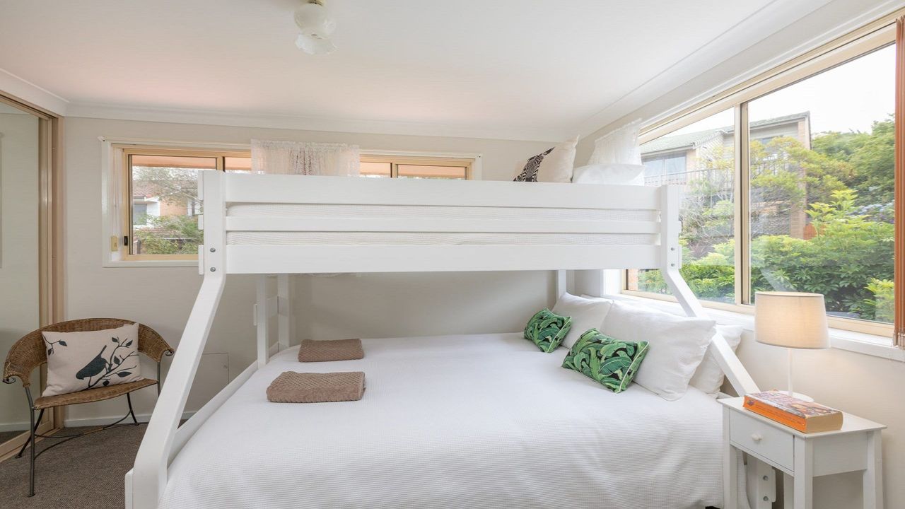 • Bedroom 2: tri-bunk (queen on bottom, king single on top) Reverse cycle, split system.